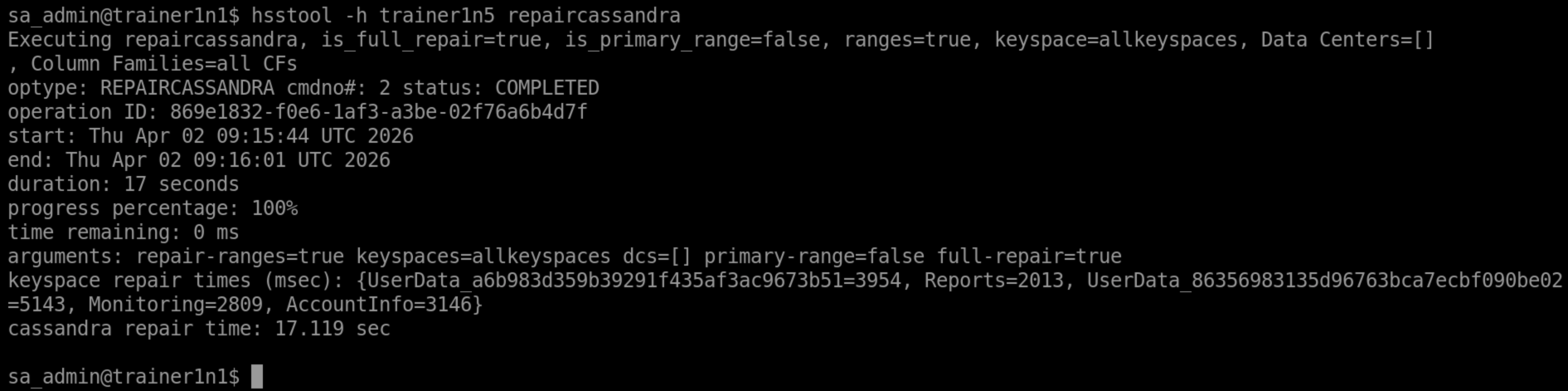 - Start a repaircassandra this will repair all the Cassandra keyspaces.