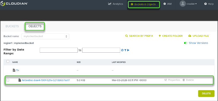 You may also enable a LEGAL HOLD against the object from here.